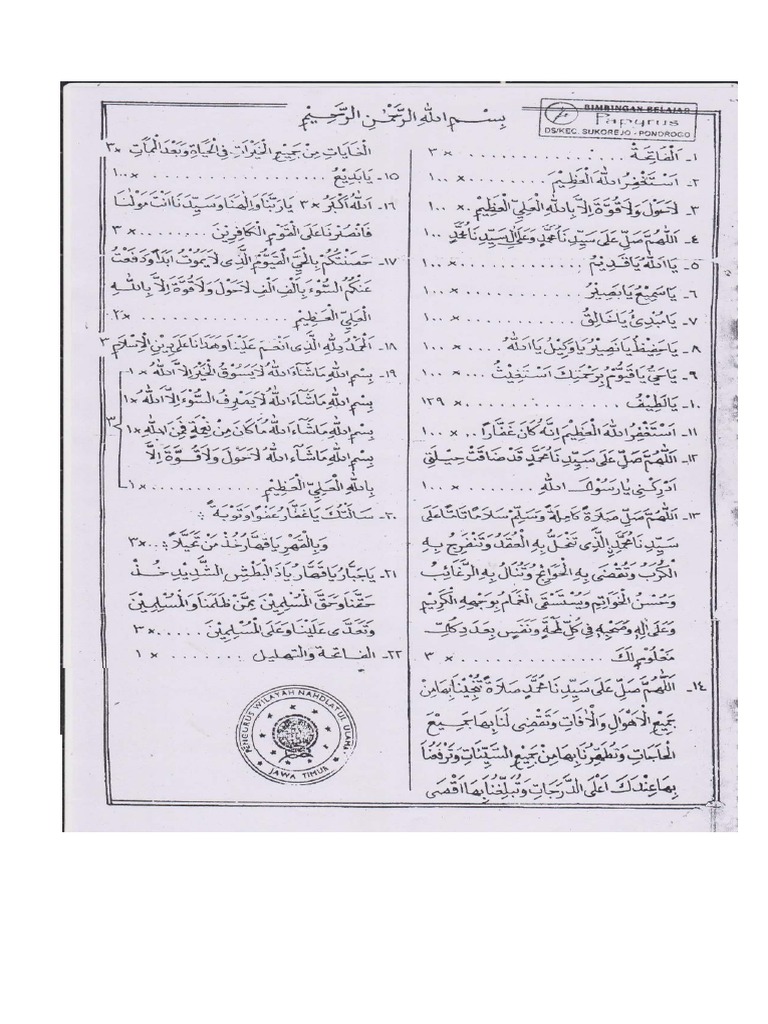 Download Ratibul Haddad Pp Salafiyah Syafi Iyah Ma Had Aly P2s2 Sukorejo from mahad-aly.sukorejo.com Jun 30, 2015 adownload buku yasin dan tahlil doc to pdf temp missourierature is an objective comparative measure of hot or cold. Download bacaan istighosah dan fadilahnya. Bacaan dan doa istighosah pdf, bacaan istighasah dan doa pdf, bacaan istighosa nu pdf, bacaan istighosah, bacaan istighosah arab pdf, bacaan istighosah bahasa sunda, bacaan istighosah doc, bacaan istighosah doc. Doa bersama ini juga ditujukan Scribd is the world's largest social reading and publishing site. Semasa masih nyantri di al. Teks istighosah nu website muhammad taqiyyuddin alawiy mamaimingsks iming buya yahya wirdul fatih do a akhir kumpulan do a dzikir wirid jpnmuslim free download bacaan istighosah arab dan latin new. Teks doa pembuka dan penutup dalam acara pembuka :