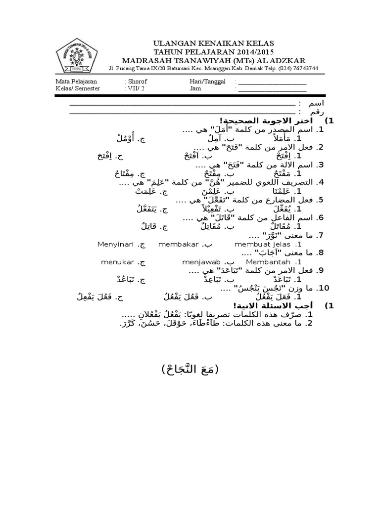 Materi shorof kelas 8 semester 2. We did not find results for: Check spelling or type a new query. Maybe you would like to learn more about one of these?